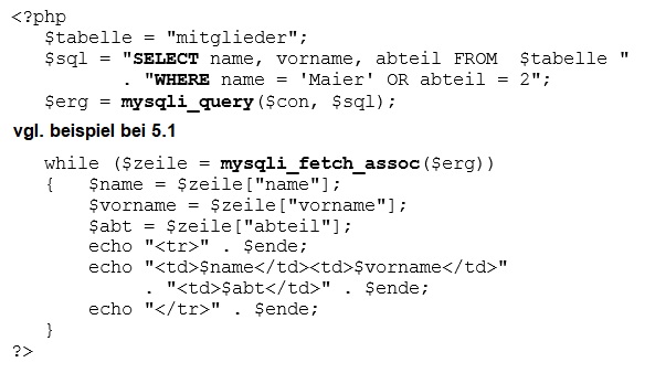 Bei der SELECT-anweisung kann die auswahl der tabellen-zeilen an bedingugnen geknüpft werden.