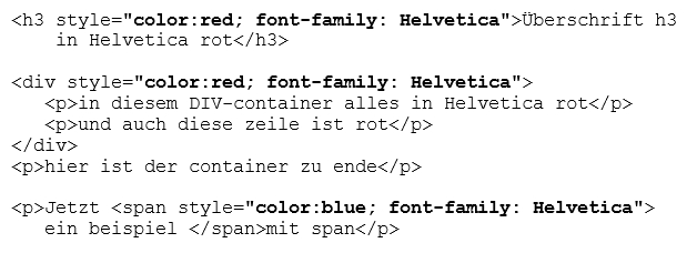 formatierung direkt in einem HTML-tag mit dem style-attribut