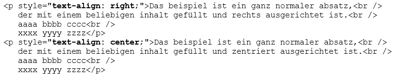| <p style="text-align: richt;">beliebiger text</p> | vereinbarung mit style-attribut |