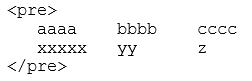 Um so etwas zu erreichen, muss man einen absatz entweder mit einer nicht proportionalen schriftart formatieren oder in das pre-tag einschließen. In beiden fällen werden übrigens die leerzeichen nicht unterdrückt.