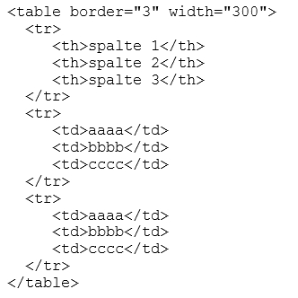| border="nn" | nn ist ein numerischer wert; um die tabelle wird ein rahmen mit der dicke nn pixel gezeichnet, die zellen der tabelle erhalten einen rahmen von 1 pixel. Fehlt die angabe oder wird 0 angegeben, werden kein rahmen gezeichnet. |