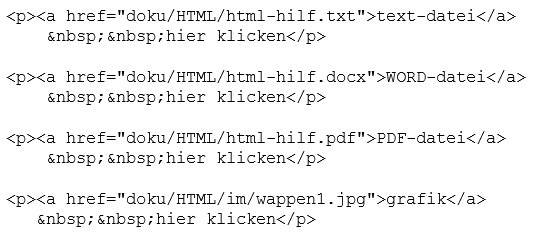 Man kann mit einem link nicht nur eine WEB-seite zur anzeige bringen, sondern beliebige dateien,sofern der browser zugriff zu einem programm hat, das die datei anzeigen kann. Die angezeigte datei kann man dann ausdrucken oder speichern. Praktische bedeutung hat das für text-dateien, PDF-dateien und grafiken. Zurück kommt man wieder über den pfeil links oben. Eine WORD-datei wird nicht angezeigt, sondern nur zum speichern angeboten und zurück kommt man mit Abbrechen. (So ist das bei Word365, bei Word möglicherweise anders).