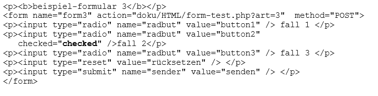 Mit dieser form des input-tags wird ein radiobutton erzeugt; das tag hat kein ende-tag und kann beliebig oft in einem formular vorkommen.