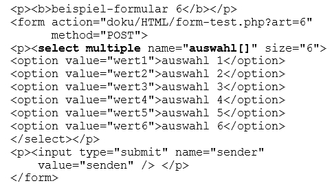 <p> [ vorsatz ] <select multible name="elemname[ ]" size="nn">