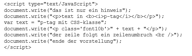 (angezeigte seite) aus, der text kann auch HTML-tags enthalten, z.b.