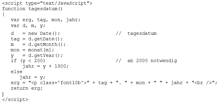 Das beispiel enthält zwei funktionen; die funktion tagesdatum