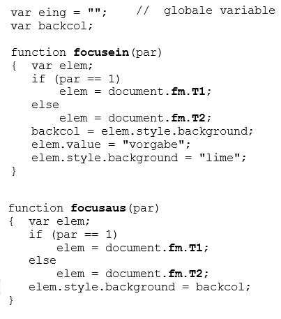 gleich behandelt werden. Es werden die funktionen focusein bzw.
