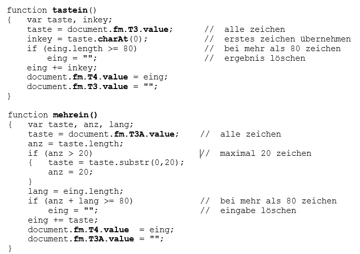 tastein wirklich nur ein zeichen übernimmt, während die funktion