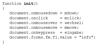 funktion init aufgerufen, mit der für einige eventhandler funktionen