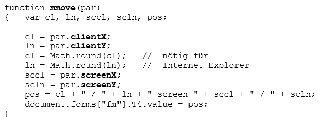 | screenX, screenY | horizontale und vertikale koordinaten am bildschirm hinweise beachten |