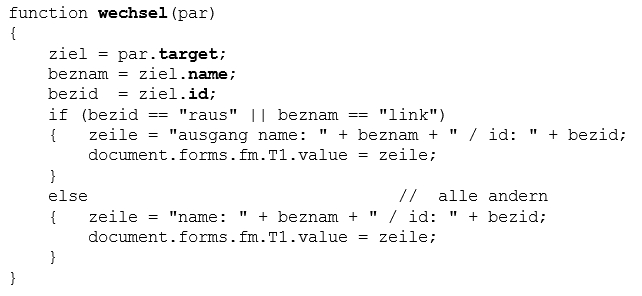 In der startfunktion wird für jeden benötigten eventhandler die zugehörige funktion vereinbart. Auch hier wird der name der funktion ohne die runden klammern angegeben.