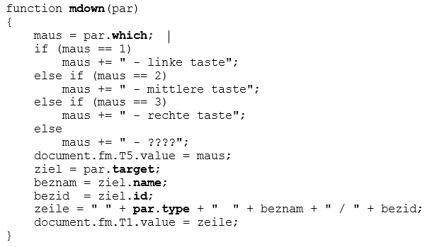 onmousedown aus, der die funktion mdown aufruft. Die funktion