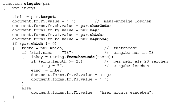 eventhandler onkeypress aus, der die funktion eingabe aufruft.