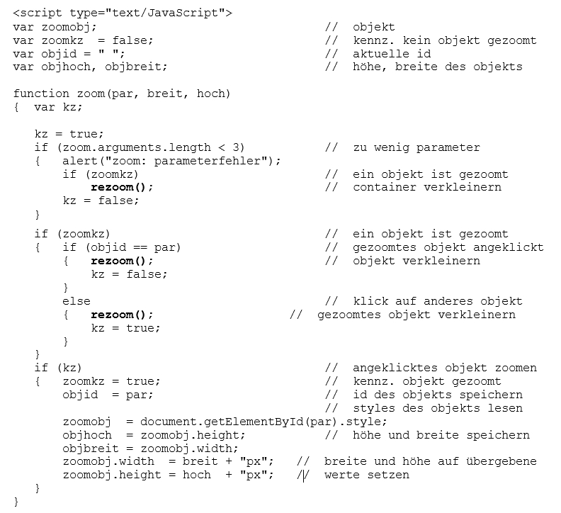 im fehlerfall bricht die funktion ab, ist bereits ein element gezoomt, wird