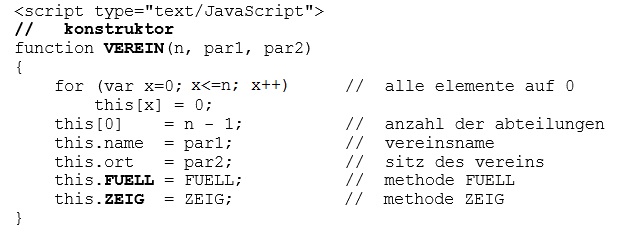 Es wird das objekt VEREIN vereinbart, das als erste eigenschaft