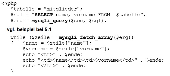 Bei erfolgreicher ausführung dieser SQL-anweisung liefert die funktion query für allen zeilen einer DB-tabelle oder für die zeilen, die der bedingung entsprechen eine ergebniszeile mit den ausgewählten spalten.Im übrigen gilt alles wie 5.1.