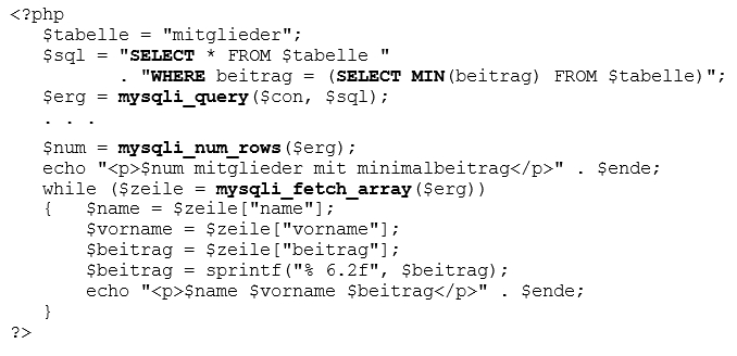 Hier kann es mehrere ergebniszeilen geben. Es wird nur der wesentliche teil
