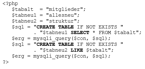 CREATE TABLE [ IF NOT EXISTS ] tabelle-neu SELECT * FROM tabelle-alt