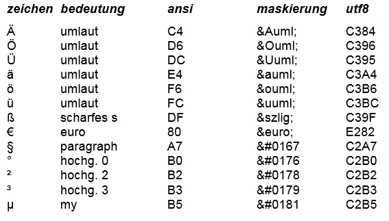 codierung von geschlossenen umlauten und einigen sonderzeichen
