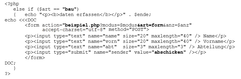 beispiel.php geschickt. Jetzt aber mit art=form, d.h. das