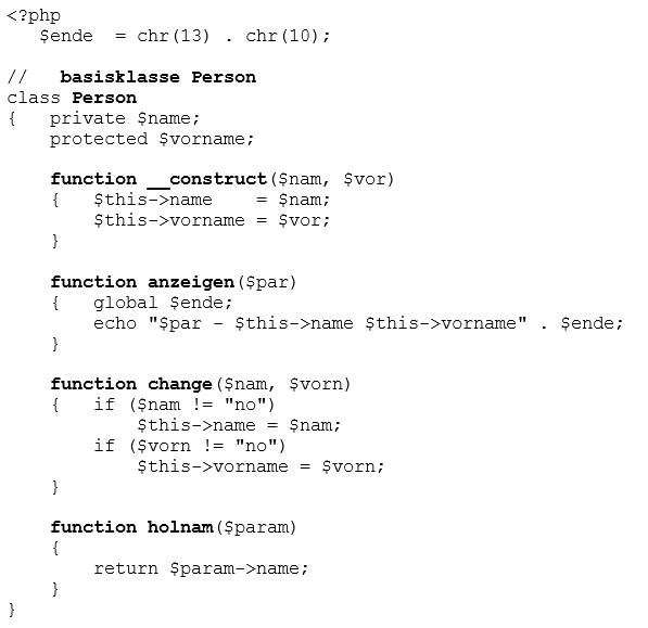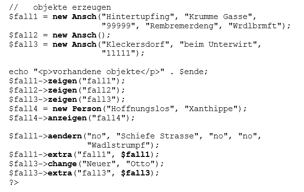 anzeigen (klasse Person) auf. Mit fall4 wird ein objekt der klasse