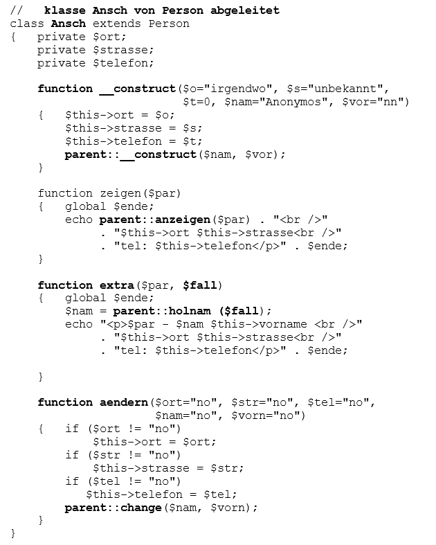 eigenschaften einer person und die abgeleitete klasse Ansch mit der