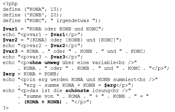 | var3 | Wenn man die zeichenkette so zusammenbastelt, erscheint tatsächllich der inhalt der konstanten in der zeichenkette |