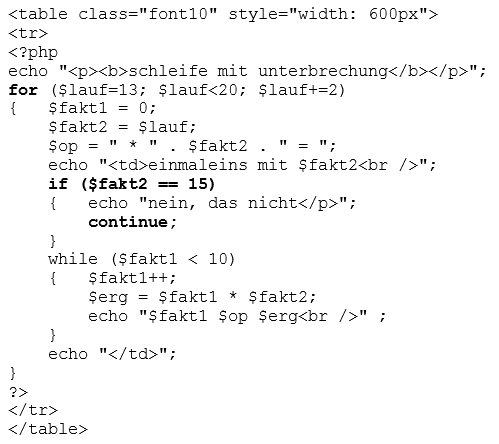 Mit der anweisung continue kann eine schleife unterbrochen werden, d.h.