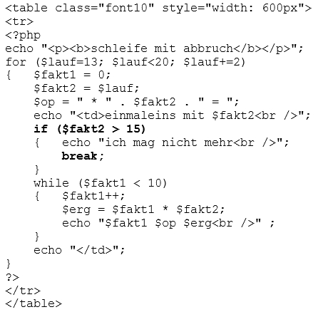 Mit der anweisung break kann eine schleife abgebrochen werden.