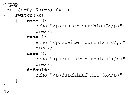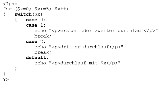 | { | case wert-1 | wenn $var den wert-1 hat, werden die | |