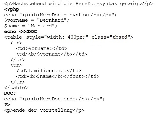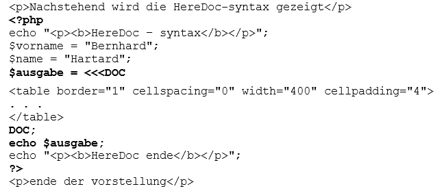 <<<DOC . . . DOC; eingeschlossen und das ganze