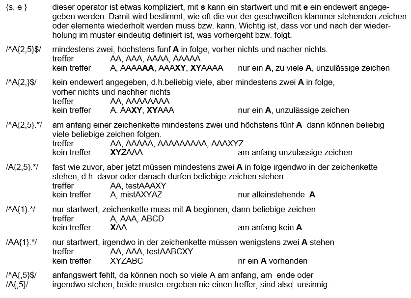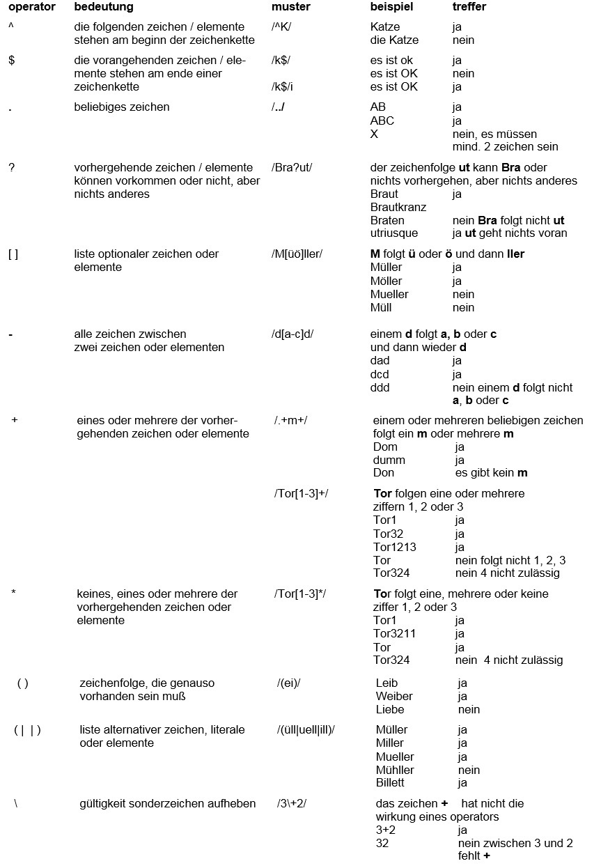 Ein regulärer ausdruck besteht aus literalen, d.h. beliebigen zeichenfolgen und/oder operatoren. Durch [ ] werden mehrere zeichen zu einem element zusammengefaßt.