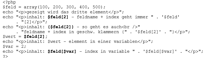 inhalt: 300 - feldname + index geht immer $feld[2]