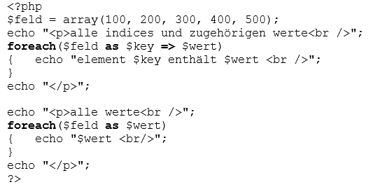 foreach - indices und werte anzeigen