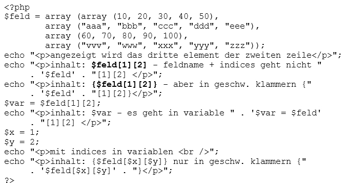 inhalt: Array[2] - feldname + indices geht nicht $feld[1][2]