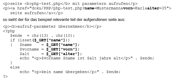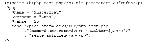 Als werte für die aufrufparameter kann man auch PHP -elemente verwenden, der aufruf sieht dann wie folgt aus: