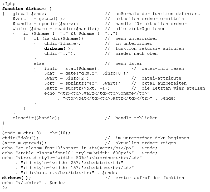 Das beispiel zeigt den inhalt eines ordners und seiner unterordner
