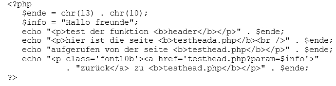 Die seite ruft wieder die seite testhead.php auf und übergibt dabei