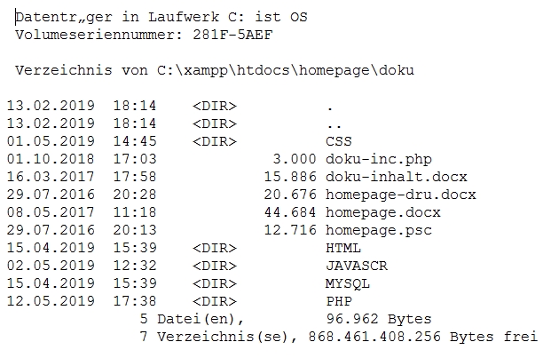 dem der inhalt des ordners doku angezeigt wird. Bei der angabe eines